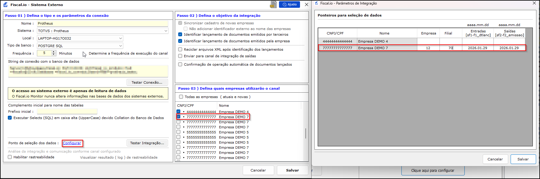 Como configurar empresas e filiais do TOTVS Protheus no Fiscal.io Monitor