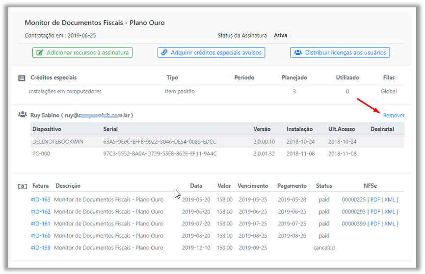 Descrição Quando você faz uma assinatura do Fiscal.io há um número definido de licenças de instalações que faz parte do seu plano. Se você quiser acrescentar licenças adicionais em seu plano de assinatura siga este procedimento. Passo 1 Acesse a área ...